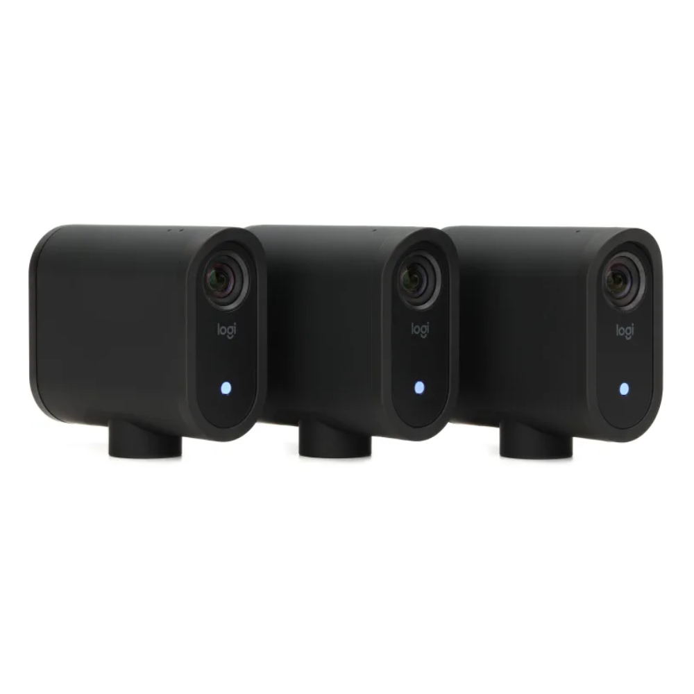 The Logitech Mevo 3 pack features three compact, wireless 1080p HD cameras designed for multi-camera live streaming. Each camera has a Sony 1080p sensor, 83.7-degree DFOV, Ambarella processor, and 6+ hours of battery life. They connect via Wi-Fi 5 (802.11ac) to the Mevo Multicam app on iOS/Android for switching and streaming